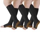 Features: Our knee high compression socks are made of a high-quality mixture of 25% spandex and 75% nylon, can provide long-lasting and durable use. High-performance fabrics made of breathable and moisture-absorbing materials can maintain an optimal temperature and provide greater comfort. These zipper compression socks can give the legs and ankle 15-20 mmHg compression pressure, it enhances blood circulation effectively, helps reduce leg fatigue, foot pain and ankle swelling. Therapeutic compression hosiery promotes blood circulation and helps relieve tired, aching, fatigued legs. Ideal for treatment of varicose and spider veins, diabetic support, long flights, nurses, maternity, and general swelling or inflammation of the legs and feet. The graduated compression provides maximum compression at the ankle with a progressive reduction through the calf promoting blood flow back to the heart. It helps reduce and prevent swelling for the wearer, maintaining positive circulation and leg health. Package include: 1 pair socks Notice: 1.Due to the different monitor and light effect, the actual color maybe a slight different from the picture color. 2.Please allow 2-3cm differs due to manual measurement.