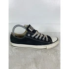 These Converse All Star sneakers provide a classic, timeless design. Ideal for casual settings, they offer comfort and durability with a black canvas exterior. The low-top style ensures easy wear, while the lace-up closure provides a secure fit. • Lace-up closure • Low-top design • Durable rubber sole • Canvas upper material • Iconic Converse branding Scuff marks on toe cap and sides, wear on soles.
