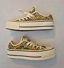 Converse Chuck Taylor All Star Lift Ox Multicolor Rainbow Platform Shoes - New Without Box Women's low-top sneakers with a lace-up closure and a unique rainbow pattern. It features a comfortable textile lining, rubber sole and a toe-cap design. This limited edition shoe is suitable for various occasions such as sportswear or casual wear. Perfect for walking, it offers breathability and a standard shoe width. Made in Vietnam, this shoe is part of the Converse Chuck Taylor All Star collection. NOTE: Please see the images to verify your purchase. Color may differ slightly due to lighting and screen quality. From a smoke-free, pet-free home. Please contact us if you need additional images or information to make your purchase. If you are happy with your transaction, please leave us a Positive Feedback. If you have any problems with your order, please contact us.