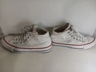 Elevate your casual wear with these white Converse Chuck Taylor All Star sneakers. Designed with a lace-up closure and low-top shoe shaft style, these sneakers are perfect for any occasion, whether it be activewear or casual outings. The canvas fabric type and breathable features make them ideal for summer, spring, and fall seasons. These unisex sneakers come in size 6.5 US and 4 UK, with a standard shoe width. The rubber outsole material and cushioned insole provide comfort and support for activities such as walking, weightlifting, school, and skateboarding. The Converse Chuck Taylor All Star product line and star theme add a touch of uniqueness to these classic sneakers.