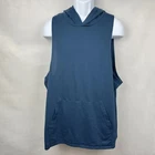 This Coofandy men's hooded tank top is perfect for any athletic activity. The top is made of a combination of spandex and cotton, ensuring a comfortable and snug fit. The solid blue color and sleeveless design make it a versatile addition to any wardrobe. The tank top is available in size 2XL and is suitable for big and tall men. It features a hood for added warmth and protection during colder seasons. The garment care instructions recommend hand wash only. This item is perfect for those who enjoy bodybuilding or any other athletic activity. Measurements, Materials and Item Care: See labels photos. Item has been washed/cleaned and it is already packed, I will ship the same day or next business day. Color might differ from picture due to flashlight used , also it depends on your monitor light settings. Open to offers. B-1774