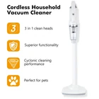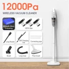 Product description Product name:Wireless vacuum cleaner Suction:12000PA Rated power:120W Rated voltage:11.1V Product size:377x120x89mm Dust cup capacity:0.53L Host Weight:600G Gross weight:1445g Battery capacity:2000mAh*3 Filter:HEPA Product color:White 12000Pa Powerful suction Suitable for cleaning blankets or any floor type Hair/bacteria/dust mites wide usage Suitable for hair and dust cleaning Suitable for oatmeal rice cleaning Suitable for coffee,milk liquid cleaning Cleaning without blind area With LED lighting,the vacuum cleaner can also be used to clean darker areas such as under the sofa,on the floors,under the bed Cleaning of edges and narrow gaps Cordless Household Vacuum Cleaner 120W Power rating Powerful power support, effective and fast vacuuming, long-lasting suction power without recession or heat. 3 types of suction tips Home&Car 3 in 1 clean heads