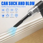 S pecificatio ns : Material:ABS Battery: Built-i n 1200 mAh lithium battery Power:120W Charging: Type-C intelligent direct charging Relevant export certificates: fcc, ce Product Rotation: 39000-45000 rpm Rated power: 60W Rated frequency: 65w (HZ) Rated voltage: ≤ 36V (V) Product suction power: 5500Pa Advantageous features: wireless, small size portable, can suck can blow. Main scope of application: small cars vans SUVs SUVs homes offices dormitories, etc. Package included: 1 X long flat nozzle 1 X brush nozzle 1 X charging cable 1 X tail nozzle 1 X host 1 X English manual 1 X filter