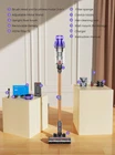 【 Strong and Durable 】 Equipped with a built-in 500W brushless motor and 8 * 2500mAh lithium-ion battery, the cordless vacuum cleaner can generate excellent suction power of up to 50Kpa and can achieve uninterrupted autonomous operation for 60 minutes in Eco mode (15 minutes in Boost mode). Fully charged in just 4 hours The built-in sensor on the LED panel can detect the remaining battery level and the working status of the wireless vacuum cleaner in a timely manner. When the roller brush/host is locked, the LED panel will emit a red alarm to remind you. Pressing the "+/-" button can change the cleaning mode. (environmentally friendly/standard/enhanced) Two in one drum brush: The cordless electric broom is equipped with a S-shaped drum brush, which can effectively reduce hair tangles and is suitable for floors and carpets. The most powerful 5 series electric floor brushes support edge cleaning and achieve deep cleaning. The dual inlet filter (high-efficiency air filter+filter sponge) generated by the super cyclone and double cone structure can isolate dust particles to the maximum extent and purify the air. This can effectively reduce dust blockage, protect the motor, and extend the service life of the vacuum cleaner. 【 Humanized Design 】 With a large dust capacity, it effectively reduces the frequency of emptying and minimizes interruptions. The wall mounted vacuum cleaner of the wireless vacuum cleaner can accommodate accessories, keeping things tidy has never been so easy! Purchasing spare batteries can double battery life.