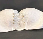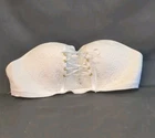 No straps what is pictured is what you get.Elevate your lingerie game with this stunning white lace strapless bra in size 36C. The corset style and push up design provide a comfortable and flattering fit, while the hook and eye closure ensures easy wear. This bra features underwire support and is perfect for everyday wear or special occasions. The solid pattern and strapless design make it a versatile addition to any wardrobe, and the lace-up feature adds a touch of kinkiness. Hand wash only to keep it looking its best. This bra is a must-have for any woman's collection.