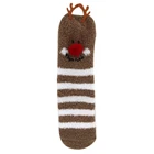 Step into winter wonderland with the ultimate snug hug for your feet. The Cozy Cuties Fuzzy Holiday Sock wraps your toes in a whirlwind of warmth and whimsy. Crafted from polyester, its plush fibers ensure your feet feel loved and toasty. The vibrant colors are a feast for the eyes, adding a pop of festive cheer to any outfit. Perfect for lounging by the fireplace or adding a layer of joy to your nightly pamper session, these socks are your feet's new best friend. Slip them on and let each stride be a celebration of softness and style. Perfect for lounging and keeping warm. Adds a festive flair to any outfit. Made from polyester. Dimensions 6.7" L x 2.5" H x 3.5" W Weight 0.1 lbs. Color multi Material Polyester