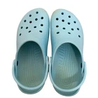 Elevate your summer footwear game with these sky light blue Crocs. These classic clogs are perfect for a casual look and provide comfort and breathability to your feet. The synthetic upper material is lightweight, making it easy to wear them all day long. The slip-on closure ensures easy wear, and the solid pattern gives it a chic look. These Crocs are perfect for both men and women, and the size 10 fits true to size. Get your hands on these clogs and add a pop of color to your summer wardrobe. In very good condition. Don’t have much actual wear, but there is some staining and scuffs as pictured. One strap has what looks to be a small burn. Please use zoom for exact condition. Plenty of wear left!