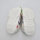 The Crocs Classic Doodle Print Clogs in Kid's Size 2 are white slip-on shoes designed for casual comfort. Featuring a round toe shape and flat heel style, these clogs are lightweight, waterproof, and cushioned for all-day wear. The colorful doodle print design adds a fun and playful touch, making them ideal for activities like walking, beach outings, or school. With a breathable synthetic upper and ankle strap for a secure fit, these Crocs are perfect for kids who enjoy expressing themselves with unique and vibrant footwear.