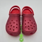 Uncover the joy of everyday comfort with the Crocs Classic Glitter Clogs, a perfect blend of style and ease for the modern woman. These clogs feature a vibrant red sparkle synthetic upper material that adds a shimmering touch to your casual ensemble. Designed with a practical round toe and a convenient slip-on closure, they offer an effortless fit for an on-the-go lifestyle. From the beach to the classroom, these versatile sandals support a range of activities with their lightweight and cushioned features. The durable synthetic lining and outsole ensure breathability and longevity, making them suitable for walking, school, or any casual outing. With a flat heel that promises all-day comfort and a standard shoe width for a snug fit, these clogs are an essential addition to your footwear collection.