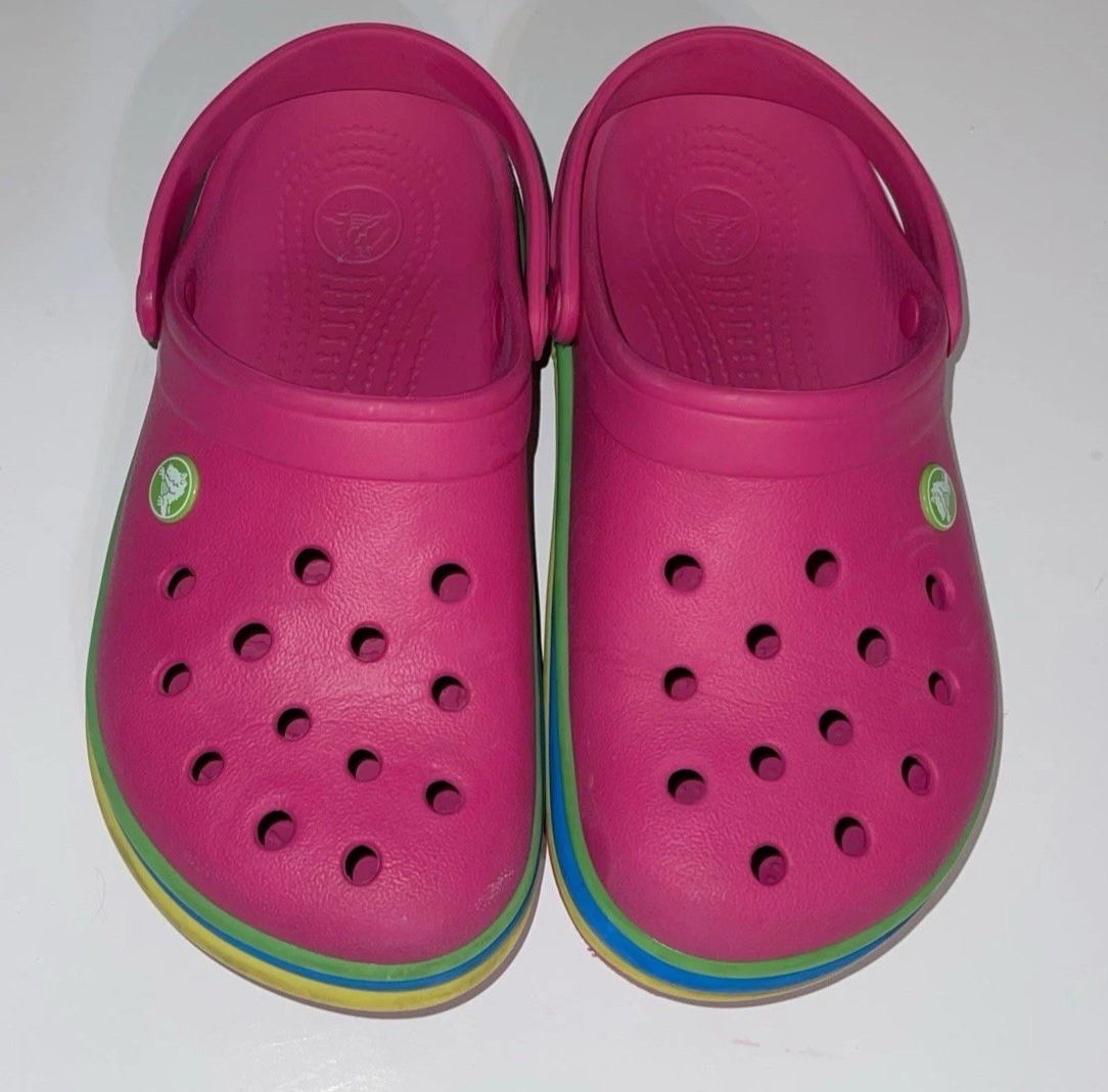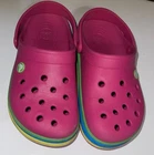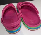 The Crocs Crocband in pink are comfortable clog-style shoes with a slip-on closure and flat heel, making them perfect for casual occasions. The pink color and logo accents add a fun and stylish touch, while the rubber outsole provides durability. These shoes are ideal for summer, fall, and spring seasons, and are designed for walking, beach activities, and school. With a round toe shape, low top shoe shaft style, and standard shoe width, these Crocs offer both style and comfort for women.