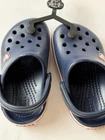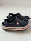Get ready for outdoor adventures with these Crocs Crocband slip-on clogs in navy blue. Designed for both boys and girls in size C6, these rubber clogs feature a round toe and flat heel style suitable for travel, activewear, and casual occasions. The solid patterned upper material and breathable insole material ensure comfort and durability, making them an ideal choice for your child's wardrobe. The Crocs Crocband model is a perfect blend of style and functionality, with a rubber outsole for improved traction and a slip-on closure for easy wearing. These unisex kids' shoes are perfect for your child's outdoor adventures and can be paired with any outfit. Get your hands on these stylish clogs today and let your child experience the comfort and breathability of Crocs.