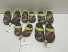 Get your kids ready for any adventure with these Crocs Classic Solar Tie Dye Clogs. Available in sizes ranging from C4 to C10, these unisex clogs are perfect for travel and casual wear. The slip-on design with ankle strap closure makes it easy for kids to put on and take off the shoes themselves. These lightweight and waterproof clogs feature a breathable upper material and unlined lining material, ensuring comfortable wear for your little ones. The tie-dye pattern, with a mix of black and multi-color, adds a fun and playful touch to the shoes. Choose these Crocs Classic Clogs for your kids and let them enjoy walking, playing at the beach, or attending school comfortably.