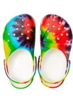 Make your little one's feet comfortable and stylish with these classic tie-dye Crocs clogs. The multicolor design will add a pop of fun to any outfit, and the slip-on style makes them easy to wear. These toddler shoes are perfect for water play and are great as kids' water shoes. The C9 US shoe size ensures a snug and comfortable fit for little feet. The Crocs brand is known for its quality and comfort, making these slippers a great choice for your little one. Get your hands on these stylish and comfortable Crocs clogs for your toddler today!
