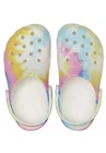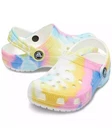 Brighten up your little one's footwear collection with the vibrant Crocs Classic Tie Dye Clogs. These iconic slip-on shoes are a staple for any playful wardrobe, offering both comfort and style. The multicolor tie-dye pattern adds a splash of fun to casual outfits, making them perfect for toddlers and kids alike. Crafted for ease, the clogs are designed with a lightweight construction that allows for comfortable wear all day long. The durable material ensures that these shoes can keep up with active kids, whether they're playing at the park or splashing around the pool. With a UK shoe size of 6 and a US shoe size of 6, these clogs are a practical choice for your child's everyday adventures.