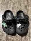 Introducing a pair of unisex Crocs toddler shoes, size 5, with Disney Pixar Cars charms. These sandals are perfect for your little one's summer adventures. The black color and Cars theme add a touch of fun to their outfit. The Crocs brand is known for its comfortable and durable footwear, making them a great choice for active kids. Whether they're running around at the park or playing in the backyard, these Crocs sandals will keep their feet comfy and stylish.