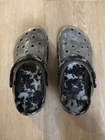 This pair of Crocs shoes is perfect for those who love the outdoors and want a comfortable, classic look. The slip-on clog style has a round toe and a flat heel, making it ideal for walking and school activities. The Mossy Oak camouflage pattern and the logo accents give it a stylish touch. The shoes are made of a blended fabric with rubber upper, insole, and outsole material, ensuring durability and comfort. It is available in a size 7 for women and 9 for men, and the shoe shaft style is low-top. The shoe is perfect for travel, activewear, and casual occasions, and it is suitable for all seasons.