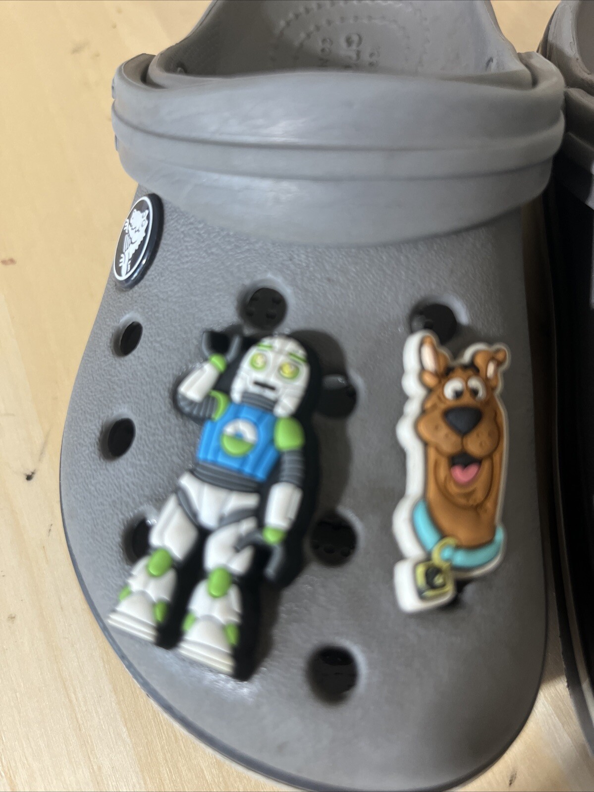 Elevate your child's summer footwear with these Crocs Unisex Classic Crocband Clogs in smoke gray. These slip-on clogs feature an almond toe shape and a low top shoe shaft style, making them a comfortable choice for casual occasions. The rubber upper material and lining material provide moderate cushioning, while the rubber outsole offers durability and traction. These Crocs Crocband Clogs come with Jibbitz Charms and are perfect for any child who loves the classic look. They are available in US 10 kids Get your hands on these athletic clogs, which are suitable for both boys and girls, and make them a part of your child's wardrobe today.