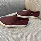 The product is a pair of Crocs Women’s 6 Citilane Roka Cranberry slip-on shoes, offering iconic comfort in a stylish loafer design. These casual shoes are perfect for everyday wear with a slip-on closure for easy on and off. The rubber upper material provides durability and added comfort, while the vibrant cranberry color adds a fun pop to any outfit. This model is known for its comfort features, making it a great choice for those looking for both style and practicality in their footwear.