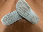 This pair of Crocs Classic clogs for women are perfect for those who prioritize comfort and practicality. Made with lightweight and breathable Croslite material, these clogs feature a closed-toe design and slip-on closure for easy wear. The multicolor blue and pink design with strap and logo accents add a touch of style to these casual shoes. Ideal for travel, activewear, and casual occasions, these clogs are suitable for walking, school, and beach activities. The flat heel style and standard shoe width provide a comfortable fit, while the rubber outsole, insole, and lining ensure durability and support. These Crocs Comfort Slide clogs are a must-have addition to any woman's shoe collection.