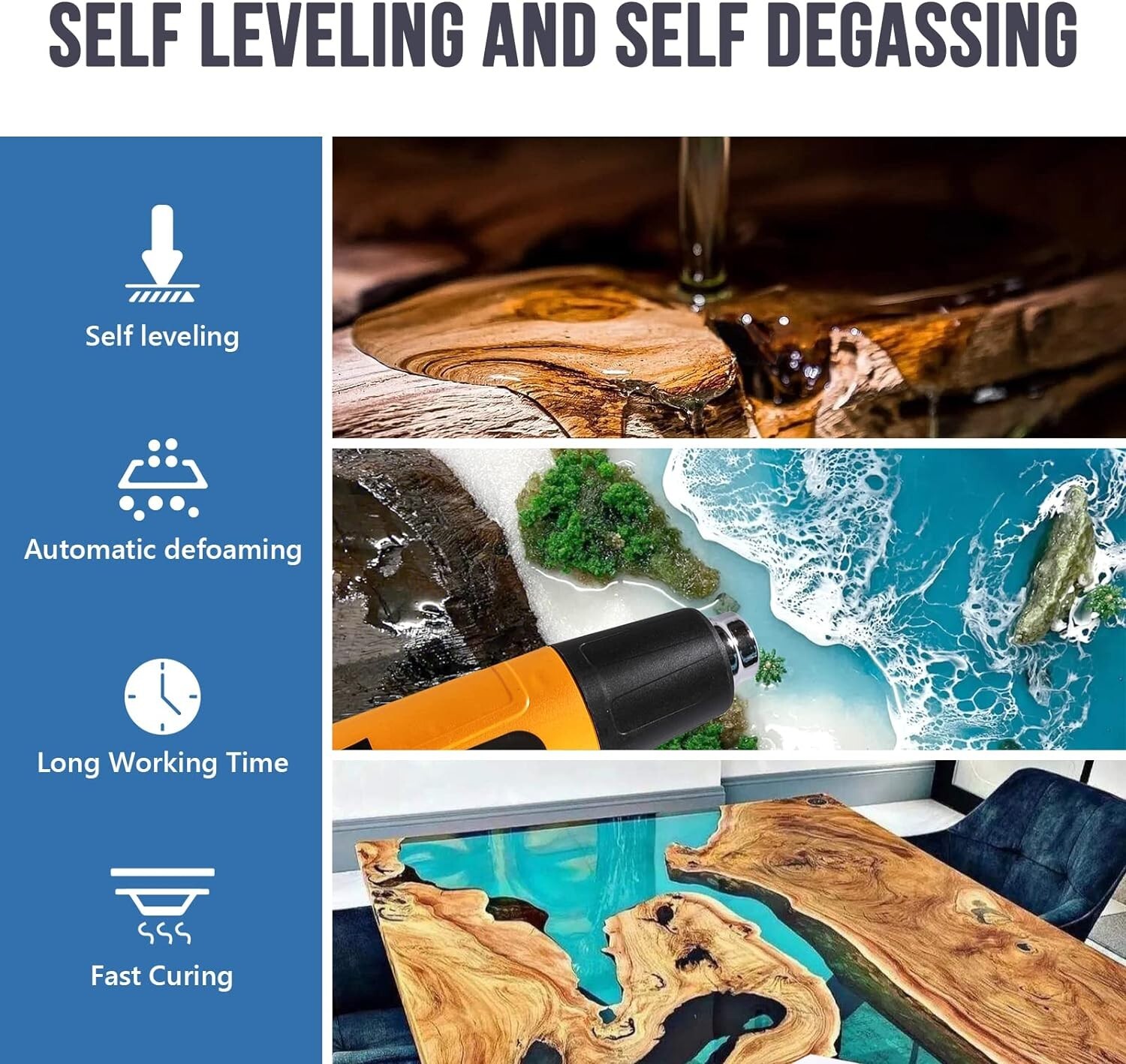 Epoxy Resin 2 Gallon - Crystal Clear Epoxy Resin Kit - Self-Leveling, High-Glossy, No Yellowing, No Bubbles Casting Resin Perfect for Crafts, Table Tops, DIY : Ratio π [EASY TO USE AND FAST CURING] Simply mix the resin and curing agent in a : volume ratio to start using. It has a 45 minute working time, making it perfect for beginners and allows time to mix bright colors for eye-catching creations. The easy to pour epoxy resin formula can self level and smooth. It will quickly solidify within 8-24 hours; Even if you haven't been exposed to it before, you can start quickly. π [SELF DEFOAMING] Our formula adds defoamer, which automatically releases trapped bubbles and has strong defoaming ability. It is recommended that each layer should not exceed /4 inch, which can be quickly and completely eliminated. To achieve perfect surface treatment in cold weather: preheat the resin and hardener before use. Our epoxy resin kit is safe, reliable, and non flammable. π [ULTRA HIGH GLOSS CRYSTAL TRANSPARENT EPOXY RESIN] Professional grade transparent epoxy resin and hardener are a perfect formula that can make your art vibrant, long-lasting, scratch resistant, moisture-resistant, rock hard, and have a glass like surface treatment, long-lasting, ultra transparent appearance, and will not turn yellow. π [SUITABLE FOR BEGINNERS & PROS] Resin set has everything you need for resin crafts! Includes Gallon resin, Gallon hardener, 2 Compression pump head comes, comes with a detailed instruction,which introduces common problems and solutions in resin production. Beginners can conduct a small amount of testing before work. π [WIDELY USED] Our resin is suitable for various DIY process projects, such as making jewelry, coasters, wooden furniture, tabletops, countertops, paints, etc. It fits perfectly with the silicone mold and will not cause the mold to tear. Don't limit your imagination, create works that you enjoy. If there are any issues (leakage, loss, usage issues), please feel free to contact me and we will provide a or satisfaction SATISFACTION GUARANTEE.