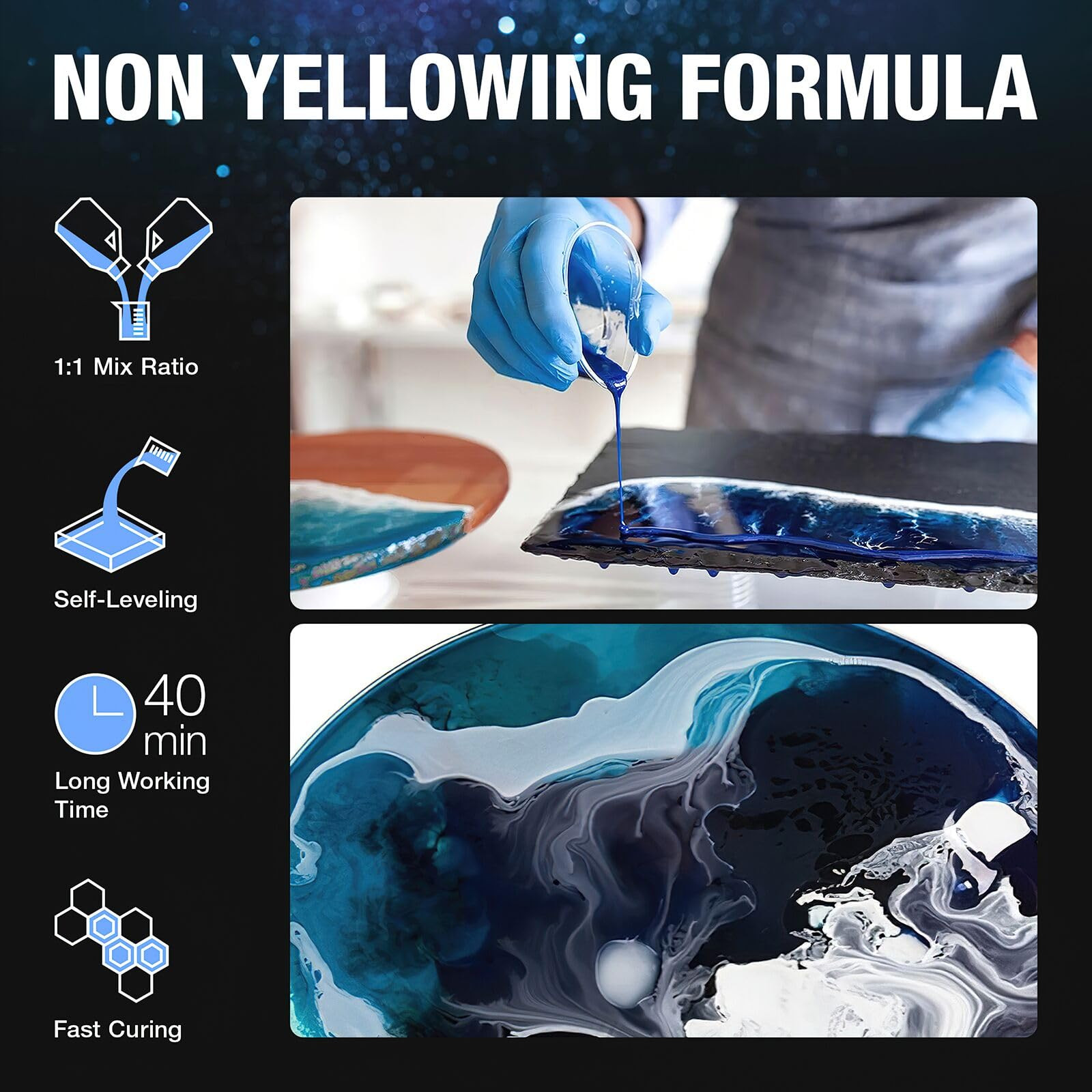 Perfect Epoxy Resin: After years of research and improvement, with unparalleled crystal-like transparency, stays clear, without yellowing, high gloss finish, better release of the creative potential, High-Quality for artwork Bubble Free & Fas Curing: Self leveling feature for a smoother, high gloss finish. Compared to other epoxy resins, epoxy resin efficiently releases air and prevents air bubbles, resulting in a flawless, smooth surface. 40 min of working time and 24-48 hours of fast curing make it easy to complete the perfect projects. Easy to use: Simple 1:1 ratio mix, easy to use, even for novices where superior clarity meets unmatched strength, meets ASTM D-4236 standards, durable and wear-resistant, no matter how big or small the project is, it's all there! It is suitable for both large and small projects. EPOXY RESIN KIT: Epoxy Resin kit: Includes 0.5 gallon resin, 0.5 gallon hardener, 2 spatulas, 2 silicone stirrers, 2 measuring cups,2 gloves, and a guide. Includes everything you need to start your project, You can focus on creating stunning, high-quality work UNIQUE GIFT: Perfect for tabletop coating, DIY art, canvas, mold casting, coasters and jewelry making, as well as for unique gifts for your loved ones, unleashing your artistic potential. As a gifts for men,gifts for men, anniversary gifts for men, birthday gifts for men, bosses day gifts for men, Christmas gifts for men, gifts for men who have everything, unique gifts for men.