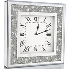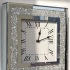 Crushed Diamond Mirror Wall Clock size: 12x12x2inches. Use AA Battery (For safety reason, Battery is not included in package). Clock Material: front surface all covered by silver mirror and glass, excellent bevel craft. Crush diamond for decoration. Quartz Clock. Upgrade Clock Mechanism: is the key point for accurate time, pointer silent movement help people sleep peaceful and comfortable. Gorgeous crystal crush diamond with mirror frame, simple clear Roman numbers dial, black metal pointer, comfortable and easy to read time. Europe top grade design in exquisite craft: crush diamond big mirror clock will add sparkle twinkle bling live element to you home. Fashion beautiful elegance gorgeous, impress everyone. Well decorate home, office, living room, bedroom, restaurant, dining room and other place. Install Instruction: Back with 2 hangers, easy for wall hang. Clock need one piece of AA battery, for safety reason, battery is not included in the package.