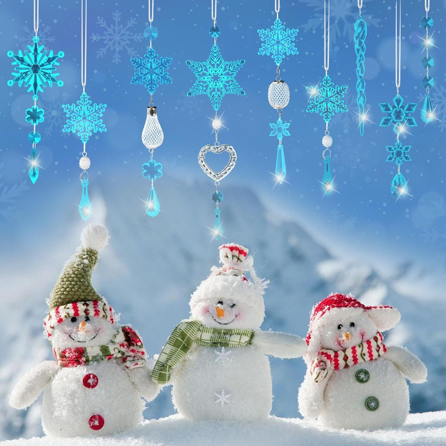 Festive atmosphere enhancement: snowflake modeling designed for Christmas, with the Christmas tree can instantly enhance the sense of holiday rituals, symbolizing the theme of winter romance and reunion. Acrylic crystal texture: high transmittance material (light transmittance rate of 92% or more), light refraction such as ice crystals like light and shadow, alternative to the traditional glass is safer and lighter. Adaptation to the Christmas scene: hanging with the wind, light and shadow like snow flickering, to enhance the sense of animation of the tree decoration. Durable and easy to save: anti-drop and wear-resistant, not easy to fade and deform, can be reused for many years, in line with the needs of the Christmas cycle of decoration. Versatile decorative: the pendant can be flexibly matched with Christmas trees, doors, windows or gift boxes, suitable for family, shopping malls and other scenes of holiday decoration. Product description Crystal Snowflake Chandelier Candleholder: The Star of Winter's Romantic Candlelight Gatherings This candleholder features a snowflake-shaped crystal pendant as its centerpiece, complemented by delicate crystal bead chains and openwork metal ornaments. It distills winter's purity and romance into a captivating visual focal point. Dreamy Crystal Snowflake Chandelier: A fusion of European vintage charm and whimsical romance. This crystal chandelier features suspended blue crystal snowflake ornaments—exquisitely crafted snowflakes paired with teardrop-shaped crystal pendants. When illuminated, they refract dazzling brilliance, infusing the entire design with whimsy and dreamlike charm. Creative Snowflake Crystal Table Lamp: Illuminates Bedroom Romance This lamp features delicate snowflake pendants and crystal elements, letting romantic starlight dance lightly in warm glow to infuse bedrooms with dreamy ambiance. 21pcs Christmas Tree Crystal Snowflake Decorations Perfect for creating festive atmospheres during Christmas, New Year's, and other holidays. Ideal for decorating Christmas trees or enhancing indoor spaces like living rooms and bedrooms to craft warm and joyful holiday scenes. A Christmas Fairy Tale by the Fireplace: A Cozy Corner Where Warm Glow Meets Starlight Blue snowflake garlands, heart-shaped pendants, and crystal bead strands cascade from above, shimmering with a lustrous glow under warm lighting. This intertwines with the fireplace's warm orange light and the Christmas tree's warm yellow glow, creating a cozy and dreamy Christmas atmosphere. The entire scene seamlessly blends the warmth of the fireplace, the joy of the Christmas tree, the anticipation of gifts, and the whimsy of ornaments, transporting you into a Christmas fairy tale filled with love and blessings.
