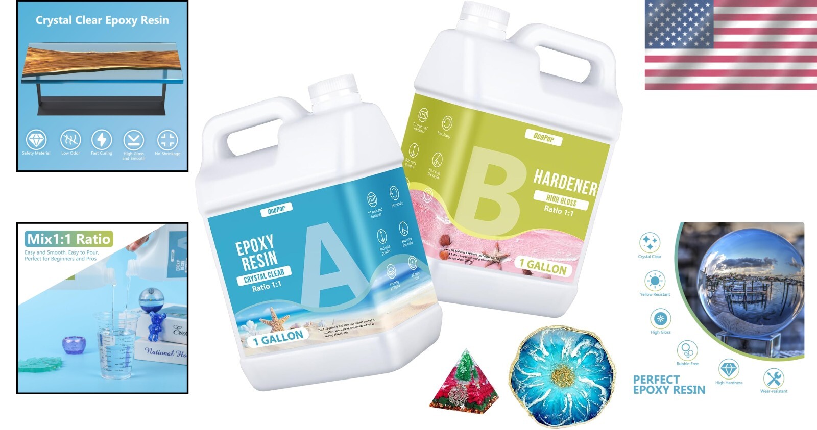 $ 27.56Crystal Clear Epoxy Resin - 1 Gallon, No Bubbles, UV Resistant for Art & Jewelry