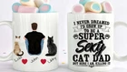 Custom Cat Dad Mug Cat Father Mug Cat Dad Gift Cat Lover Gift Cat Mug Cat Mom Product Details.. This high quality 11oz. ceramic white mug has a premium hard coat that provides crisp and vibrant color reproduction sure to last for years. Perfect for all hot & cold beverages. The highest quality printing possible is used. It will never fade no matter how many times you wash it. Material: 100% Ceramic. Print both sides. Dishwasher and Microwave Safe. High Gloss + Premium White Finish. Printed in the U.S.A. Personalized & Custom. We support personalized and custom mug to add custom, when placing an order, you can add notes to the "order note" in shipping address section. Also you can contact us directly via message. Shipping Info. Ready to ship in 1 to 2 business days, All products are made-to-order and proudly printed in the United States. Shipped by USPS and DHL, You will receive your order in 5-7 days. Replace & Refund. All products are defective during shipping broken, chipped will be replaced free of charge. You are not satisfied with the product, we will refund 100% money to you. If any other issues arise, please do not hesitate to message, we would be more than happy to assist you.