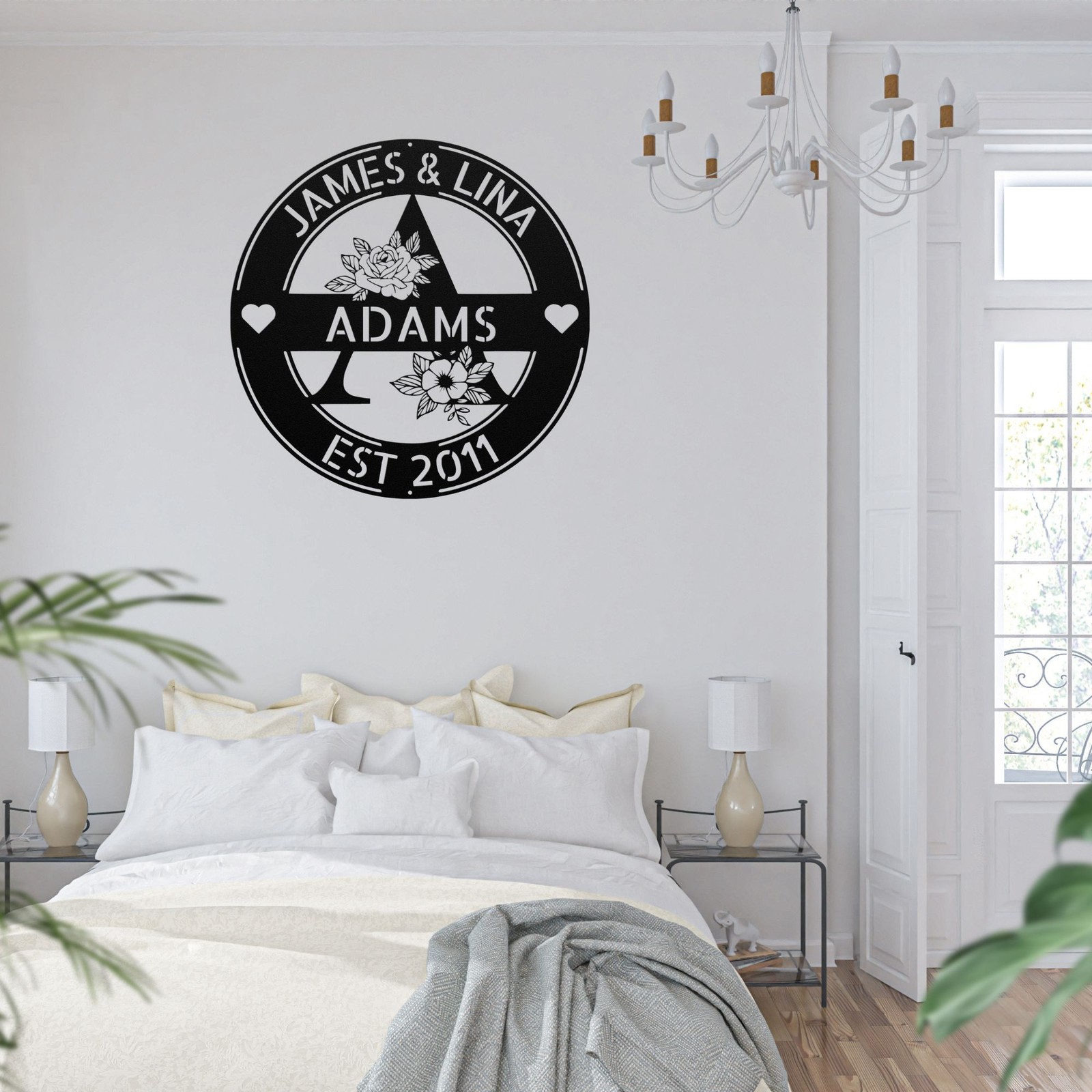 Custom Couple Metal Sign Monogram Initial Last Name Family Wall Art Gift Decor