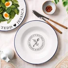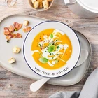 Custom Engraved Enamel Camping Retro Deep Soup Plate Custom Engraved Enamel Camping Retro Deep Soup Plate DETAILS ★ Discover the Perfect Enamel Soup Plates: Ideal for both indoor and outdoor dining: Enjoy your favourite meals with our distinctive Enamel Plates. Whether it's a personalised plate that brings a traditional style to your table or an adventurer's enamel plate perfect for camping and picnics, these plates are a must-have. They make a wonderful gift for the adventurer in the family or any friend who loves the outdoors! Perfect for hiking trips, camping weekends, lazy beach days, and picnics, these plates add a unique touch to your table setting. ★ Retro Charm and Timeless Design - Our Enamel Plates feature a classic blue and white finish reminiscent of American diners, adding a nostalgic touch that guests will love. - The retro blue and white enamel design not only enhances the aesthetic appeal but also makes a statement on any table. The blue rim creates a unique look and makes it easy for people to identify the edge of the plate, ideal for care homes or those with vision difficulties. ★ Perfect for Any Dessert & Food: Ideal for both indoor and outdoor dining, our versatile soup plates add a touch of style to every meal. Whether you're serving hearty soups, pasta, cold meats, steak, sandwiches, BBQ, cheese, puddings, desserts, ice cream, homemade cakes, pancakes, waffles, sweet treats, breakfast, and more, these plates make every dish look and taste even better. ★ Timeless Design: The retro blue and white enamel design not only enhances aesthetic appeal but also makes a statement on any table, elevating the presentation of your food. The blue rim creates a unique look and makes it easy for people to identify the edge of the plate, ideal for care homes or those with vision difficulties. ★ Durable and Long-Lasting: Crafted from heavy-duty stainless steel and covered with an ultra-durable, fuséd-glass coating, these plates develop a unique character over time. The enamel coating is heat and chemical resistant, making these plates highly versatile. They are safe for use in the oven and microwave for reheating food and can be easily cleaned in the dishwasher. The stainless-steel interior ensures long-lasting durability, even in customer-facing environments. ★ Exceptional Versatility: The enamel coating on these soup plates is both heat and chemical resistant, allowing you to serve homemade ice cream directly from the freezer or bake a delicious apple crumble in the oven. These bowls can handle it all. ★ Personalisation Options: Personalise your Enamel Kitchenware with initials, a name, or a custom logo to create a unique, personalised piece that reflects your style and identity. They make exceptional gifts for kids, Father’s Day, Mother’s Day, teachers, wedding favours, birthdays, housewarmings, couples, and any occasion where a thoughtful touch is appreciated. Choose from a wide range of designs to find the perfect match. ★ Ideal for Various Settings: Designed to withstand the rigours of everyday use, cleaning, and storage, our Enamel Tableware are equally at home in commercial settings like restaurants, cafes, and hotels. Their durability ensures they maintain a fresh appearance even with frequent use. It can be safely uséd it in the oven and microwave when reheating drinks. ★ Corporate Gifting and Promotions: Enhance your business relationships by personalising Enamel Plates with client names, monograms, or company logos. They make memorable closing gifts or promotional items that leave a lasting impression. ★ Stylish: Choose from a wide range of design options to personalise your plate, ensuring it reflects your unique style. ★ Safe: BPA-free and crafted with quality materials, our enamel tableware are designed with your safety and satisfaction in mind. ★ Care Instructions: - Our enamel tableware can be washed in the dishwasher, ensuring quick and convenient cleaning. The classic retro blue and white enamel tableware gains a unique character with repeated use, as chips and imperfections contribute to its individual charm. - To maintain a flawless appearance, avoid using the dishwasher. Clean gently with non-abrasive cleaners and avoid scourers to preserve the enamel finish. SPECIFICATIONS Dimensions : H x D: 60 x 245 mm Diameter ( 2.36" x 9.65" ) Material: Enamel Steel, Fuséd Glass Coating Technique: Laser Engraved. Personalise any design with names, dates, templates, logos, or images. Our high-quality, long-lasting laser engraving surpasses vinyl stickers, ensuring durability and a professional finish. Note: Chips and imperfections are part of products' individual look. HOW TO ORDER 1. Choose your Engraving Side: Select whether you want engraving on the top or bottom rim, the centre of the plate, or both. 2. Type in Engraving Style and Order: Specify the engraving style and the exact text you want engraved based on our provided Design Template Options. You can add any additional instructions in brackets (). Please refer to Style #A - Style #R for the Plate Rim's Engraving Example: - Top Rim: Style #O: Timothy Harrington - Bottom Rim: Style #O: Amelia Harrington - Centre: Style #9: mr&mrs Harrington, 05th May 2025 ▸If you want to use your own logo, please attach/ send us your file once you finish . Please note to attach the highest resolution file as possible to avoid quality issues Not all files are scanned prior to manufacturing, if you're not sure, please send us an email after placing the order to confirm if the file is of an acceptable quality. ▸You can combine or pick any font, icon, style, etc between our provided designs, or choose not to include a date, title or icon for example. All artwork based on our available design is free of charge. ▸If you don't like any of our template and want to create your own bespoke artwork design, please feel free to contact us with any questions you may have, a small additional fee may apply. DELIVER