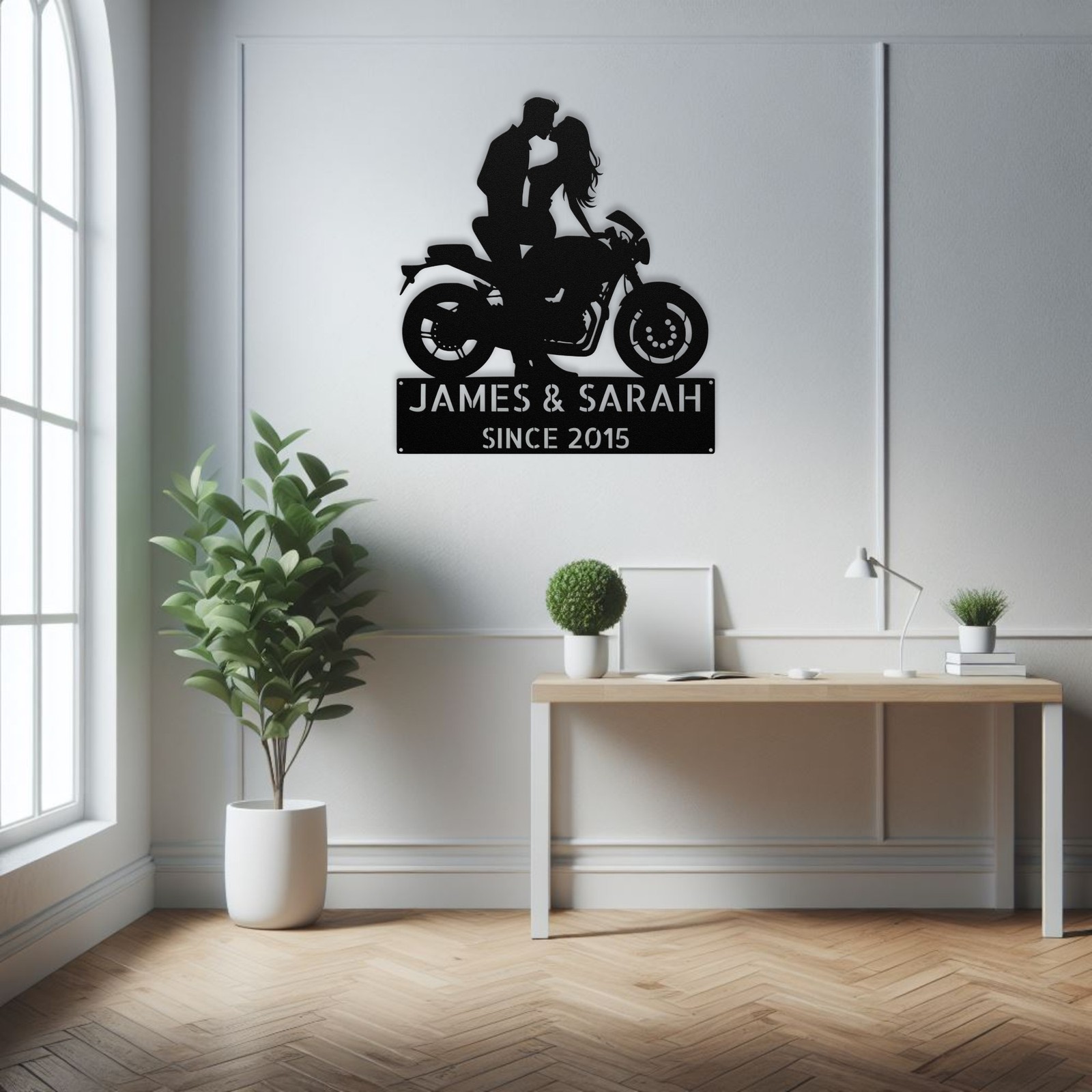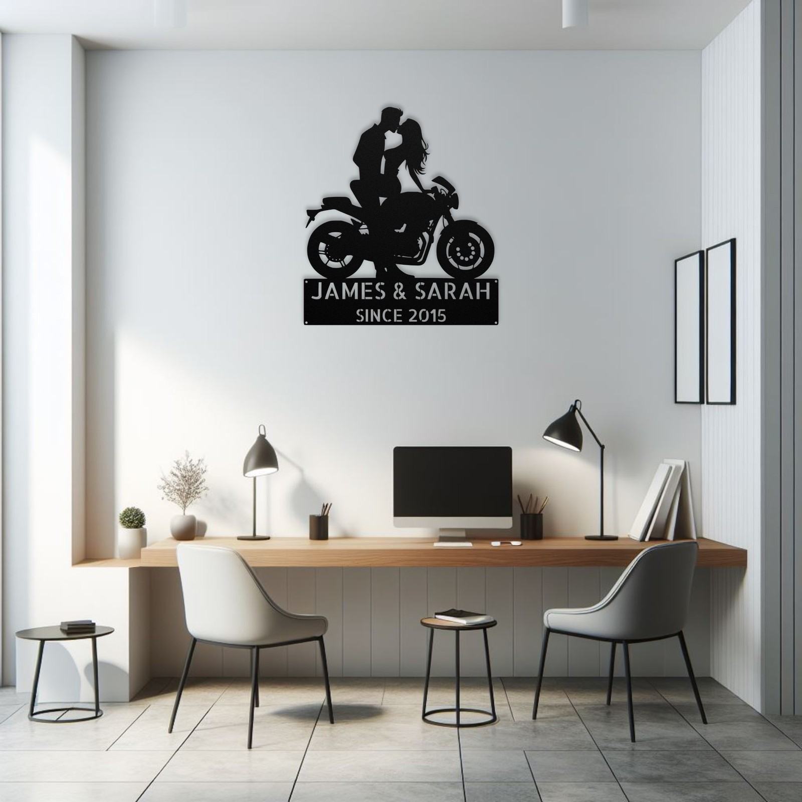 Product Description Add a romantic touch to your home decor with our Personalized Kissing Couple Motorcycle Metal Sign . This unique piece of wall art beautifully captures the love between a couple on a motorcycle. Made from high-quality 16-gauge metal , this custom sign is built to last and features a durable powder coating that makes it dust, weather, and water-resistant . Itβs perfect for both indoor and outdoor use, allowing you to showcase it wherever you like. This personalized metal sign makes a thoughtful gift for Christmas, birthdays, or any special occasion . You can customize it with a name or special message, making it a unique present for couples or motorcycle enthusiasts. Whether you display it in your home, office, or garage, this sign will add warmth and personality to your space. Key Features: Customizable Design : Personalize with a name or message for a special touch. Durable Material : Made from sturdy 16-gauge metal for long-lasting durability. Weather Resistant : Powder-coated finish protects against dust, moisture, and outdoor elements. Versatile Decor : Ideal for both indoor and outdoor settings. Perfect Gift Idea : A wonderful present for couples, suitable for any occasion. Charming Artwork : Features a romantic depiction of a kissing couple on a motorcycle. Celebrate love and adventure with this Personalized Kissing Couple Motorcycle Metal Sign . Order yours today and create a memorable gift or a beautiful addition to your decor! Service and Color Choice My metal signs are designed to be personalized just for you, making them the perfect addition to any space! The default color is Black , but I also offer a variety of beautiful options including Copper, Gold, White, and Silver . After placing your order, simply contact me with your preferred color choice, and I'll ensure your sign is exactly how you envision it. Letβs create something special together! π How Metal Signs Are Measured Metal signs are measured from the widest point to the opposite widest point of the design. The listed size (8β, 10β, 12β, 18β, 24β, 30β, 36β, etc.) always refers to the longest edge of the artwork, not the height only and not the width only. Because every design has its own shape and proportions, the other dimension (height or width) will adjust automatically . π Example (30-Inch Size) When selecting a 30-inch sign , the longest side of the design will measure 30 inches . If the design is wider than it is tall: Width = 30 inches Height adjusts proportionally (often around 18β22 inches depending on the design) If the design is taller than it is wide: Height = 30 inches Width adjusts proportionally This ensures the sign keeps its correct proportions and the original shape, no matter which size is selected. π¨ Custom Designs & Logos Welcome Have a special idea in mind? I can make it happen! Whether you need a business logo , family emblem , pet silhouette , or a one-of-a-kind design , I can create it from scratch and turn it into a high-quality metal sign. You can send your concept, sketch, or photo, and Iβll handle the custom design, editing, and production from start to finish. Your vision becomes real metal artwork made exactly the way you want it. β¨ Custom Any Design: If you have a special idea in mind, I can turn it into a metal sign, just message me! π¦ Ordering & Gift-Ready Each sign is crafted to order with great care and attention to detail. Your piece arrives ready to hang , making it easy to display or give as a thoughtful gift. Whether it's for your home or for someone special, every sign is made to impress and last for years. π Your support means the world to me and my family. Thank you for helping keep this small art business growing. π Production & Shipping Every sign is made to order with a fast turnaround time. Production Time: 1β2 business days Free Shipping: UPS Ground (estimated 2β5 business days ) Expedited Shipping: FedEx 2-Day Delivery available at checkout Shipping Location: All orders ship from Indiana, USA Each order is packed securely to ensure your metal sign arrives safely and ready to display.
