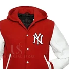 Custom Name NY Yankees Hooded Red Wool & White Leather Sleeves Varsity Jacket Show off your team spirit with this stylish and personalized Yankees varsity jacket. Featuring a vibrant red wool body and crisp white leather sleeves, this jacket is a true statement piece, offering comfort, durability, and a bold look for any fan. Product Details Condition : 100% Brand New External Material : Wool Body with Genuine Leather Sleeves Inner Material : Viscose Lining Collar : Hooded Closure : Snap Tab Closure Sleeves : Full Length Sleeves Cuffs : Rib Knitted Cuffs Hemline : Rib Knitted Hemline Crafted with Excellence Made with high-quality wool for warmth and a comfortable fit Genuine leather sleeves provide a luxurious and durable finish Soft viscose lining ensures a smooth and breathable interior Snap tab closure guarantees a secure and easy fit Ribbed knitted cuffs and hemline for added style and comfort Customizable with your name for a personal touch Timeless Design Eye-catching red and white varsity design inspired by the NY Yankees Features classic varsity jacket details for a sporty, vintage look Fine stitching throughout for exceptional durability and craftsmanship Full-length leather sleeves bring a bold contrast to the wool body Rib-knitted cuffs and hem ensure a snug fit, ideal for cooler days Personalized for You Customizable with your name or nickname on the back for a truly unique piece Show off your Yankees pride with a jacket that’s all your own Perfect for game days, casual outings, or as a standout collectible Custom Fit Standard sizes available: check our size chart image for your perfect fit Custom sizes can be made to order - please contact us for details Show Your Yankees Pride This Custom Name NY Yankees Hooded Red Wool & White Leather Sleeves Varsity Jacket is the ultimate way to celebrate your team in style. Whether you're at the ballpark, out with friends, or adding a personalized touch to your collection, this jacket will make a statement wherever you go. Ideal for fans of all ages, it also makes a perfect gift for the passionate NY Yankees supporter in your life! Important Information 1. Return/Exchange Policy: We offer a 14-day return/exchange policy. Buyer is responsible for return shipping costs. 2. International Shipping: Please note that import customs duty and taxes are the buyer's responsibility. We are only responsible for the product and shipping. 3. Custom Orders: Additional charges may apply for custom orders, if applicable. Customer Service "Committed to excellence in customer satisfaction, we respond to all inquiries within 24 hours and strive to resolve any issues promptly and fairly. Your satisfaction is our top priority - please don't hesitate to contact us if you have any questions or concerns about your purchase."