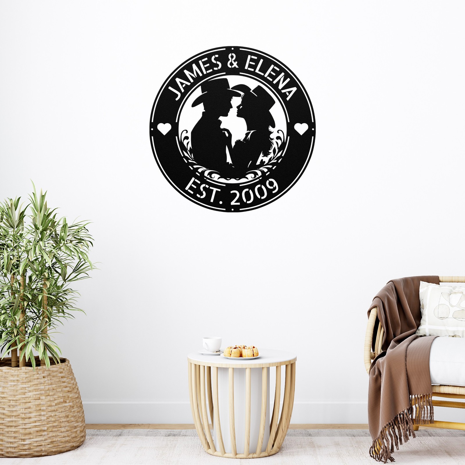 Product Description Celebrate your love for the country lifestyle with our Custom Western Couple Metal Sign ! This personalized wall art decor is perfect for country lovers, adding a charming touch to your home, office, or outdoor space. Made from high-quality 16-gauge metal, this sign features a durable powder coating that protects it from dust, weather, and water, ensuring it looks beautiful both indoors and outdoors. Searching for the ideal gift? This custom metal sign makes a wonderful choice for Christmas, birthdays, or any special occasion. Itβs a heartfelt way to honor the bond between couples who share a passion for the western lifestyle. Key Features: Customizable Design : Personalize the sign with names or a special message. Durable Material : Crafted from 16-gauge high-quality metal for long-lasting beauty. Weather-Resistant : Powder-coated finish protects against dust, rain, and rust. Versatile Decor : Suitable for both indoor and outdoor display. Great Gift Idea : A unique present for any couple who loves country living. Embrace your love for the western lifestyle or surprise a fellow country enthusiast with this lovely metal sign. Order yours today and add a personal touch to your decor! Service and Color Choice My metal signs are designed to be personalized just for you, making them the perfect addition to any space! The default color is Black , but I also offer a variety of beautiful options including Copper, Gold, White, and Silver . After placing your order, simply contact me with your preferred color choice, and I'll ensure your sign is exactly how you envision it. Letβs create something special together! π How Metal Signs Are Measured Metal signs are measured from the widest point to the opposite widest point of the design. The listed size (8β, 10β, 12β, 18β, 24β, 30β, 36β, etc.) always refers to the longest edge of the artwork, not the height only and not the width only. Because every design has its own shape and proportions, the other dimension (height or width) will adjust automatically . π Example (30-Inch Size) When selecting a 30-inch sign , the longest side of the design will measure 30 inches . If the design is wider than it is tall: Width = 30 inches Height adjusts proportionally (often around 18β22 inches depending on the design) If the design is taller than it is wide: Height = 30 inches Width adjusts proportionally This ensures the sign keeps its correct proportions and the original shape, no matter which size is selected. π¨ Custom Designs & Logos Welcome Have a special idea in mind? I can make it happen! Whether you need a business logo , family emblem , pet silhouette , or a one-of-a-kind design , I can create it from scratch and turn it into a high-quality metal sign. You can send your concept, sketch, or photo, and Iβll handle the custom design, editing, and production from start to finish. Your vision becomes real metal artwork made exactly the way you want it. β¨ Custom Any Design: If you have a special idea in mind, I can turn it into a metal sign, just message me! π¦ Ordering & Gift-Ready Each sign is crafted to order with great care and attention to detail. Your piece arrives ready to hang , making it easy to display or give as a thoughtful gift. Whether it's for your home or for someone special, every sign is made to impress and last for years. π Your support means the world to me and my family. Thank you for helping keep this small art business growing. π Production & Shipping Every sign is made to order with a fast turnaround time. Production Time: 1β2 business days Free Shipping: UPS Ground (estimated 2β5 business days ) Expedited Shipping: FedEx 2-Day Delivery available at checkout Shipping Location: All orders ship from Indiana, USA Each order is packed securely to ensure your metal sign arrives safely and ready to display.