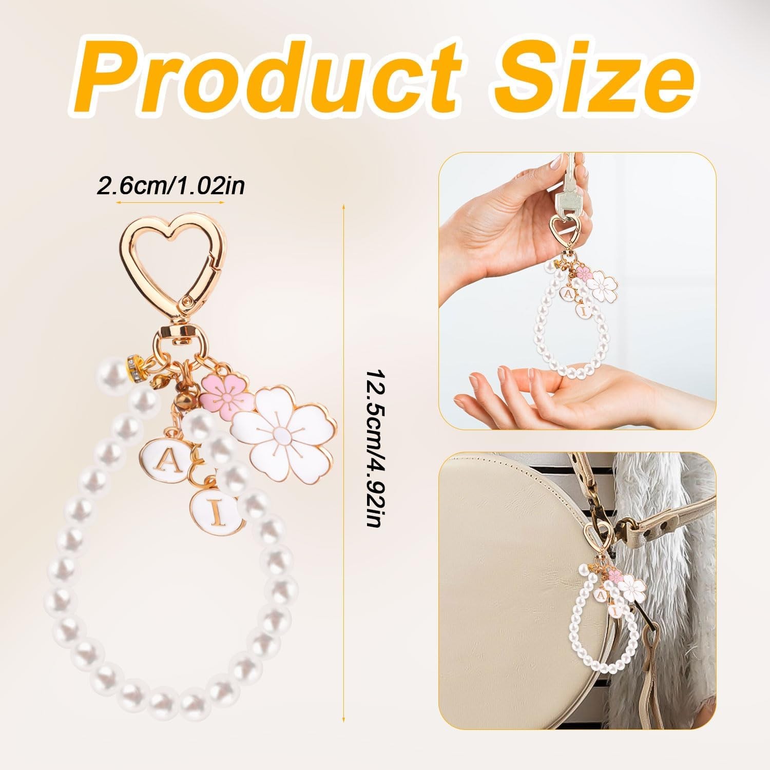 2pcs Elegant Bow Keychain with Pearl Charm for Women Car Keys