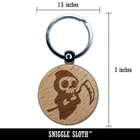 Cute Grim Reaper Death Halloween Engraved Wood Round Keychain Tag Charm