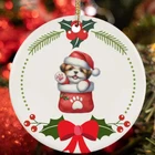 Cute Shih Tzu Puppy Dog Pocket Lover Wreath Christmas Ornament Gift Decor
