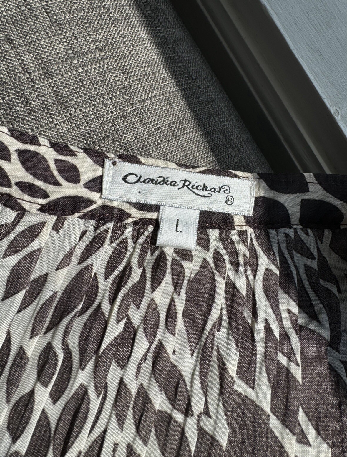 Cute Y2K Dressy Animal Print Blouse Large Claudia Richard’s Gorgeous brown animal print sheer ruffled blouse Perfect for work attire or just dressing up Size - Large Small run but not that noticeable
