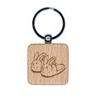 Cute and Fluffy Bunny Slippers Engraved Wood Square Keychain Tag Charm