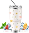 Daisy 30oz Stainless Steel Tumbler with Straw for Travel Iced Coffee Birthday Gift