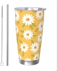 Daisy Thermal Tumblers: Food-Grade 304 stainless steel material and double-walled vacuum technology can keep beverages warm for 6 hours, beverages cold for 12 hours.You can enjoy your favorite coffee, tea, wine, smoothie, milk, water, beer, juice, soda for a long time. Lovely Daisy Pattern: 20oz floral coffee tumbler is full-frame printed with white daisy. Different pattern to experience different effects. 20oz flowers coffee cups fits in most cup holders be easy to take your drinks outdoors. Daisy Coffee Tumbler Daily Use: Our 20oz floral tumbler is the ideal size for your daily use! The yellow insulated water bottles are suitable for many occasions, can be used for home, office, garden, beach, outdoors, and at events like sports, traveling, camping, and driving, ideal for teachers, office workers, drivers, students, sailors, etc. Easy Care Tumblers: Cute daisy travel coffee mug come with a lid, a reusable straw, and a straw brush.The funny farmhouse coffee travel mug are easy to hand wash. Do not use hard objects to scrape or rub the cup body. Ideal Plants Lovers Gifts: Our daisy tumbler with lid and straw is an ideal gift for women, men, family, and friend on Holiday, Birthday, Christmas, Thanks Giving, Girl''s Trip, Mother''s Day, Father''s Day, Valentine''s Day, moving away, housewarming, promotion, new job.
