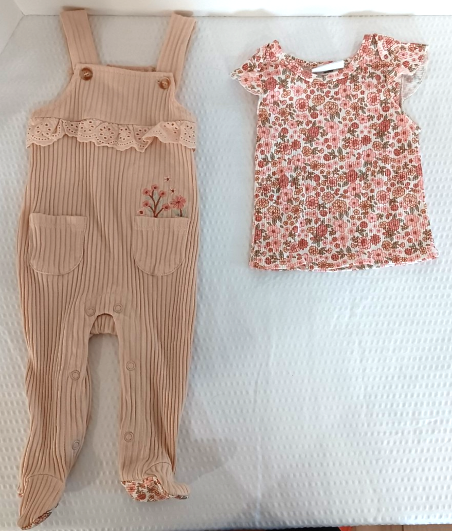 ๐ Description: Dress your little one in adorable style with this Daisy Fuentes 2-piece outfit! ๐ถ๐ ๐ Includes a smocked floral short-sleeve t-shirt ๐ Matching tan ribbed overalls with embroidered flowers + lace trim ๐ Easy snap-button closures for quick diaper changes ๐ Size: 3โ6 Months ๐งต Fabric: 60% Cotton, 40% Polyester ๐ Perfect for: Photoshoots, family outings, or gifting! ๐งผ Smoke-free, pet-free home ๐ฆ Ships fast with care!
