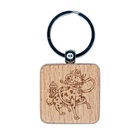 Dalmatian Fire Fighter Dog Engraved Wood Square Keychain Tag Charm