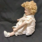 This Danbury Mint Little Miss Shirley Temple Doll Collection features a creepy and haunted eyes design, perfect for all occasions. The doll has blonde hair, light complexion, and is dressed in a babies theme. It comes in its original packaging, which has been opened, and includes the doll itself. No prove she is haunted but those eyes. This original and licensed reproduction doll is a great addition to any collection, but may not be suitable for all audiences due to its creepy design. Personalization and handmade features are not available for this item. It is important to note that the doll's eyes are made of uranium, adding to its unique and eerie aesthetic. Halloween Goth Haunted House