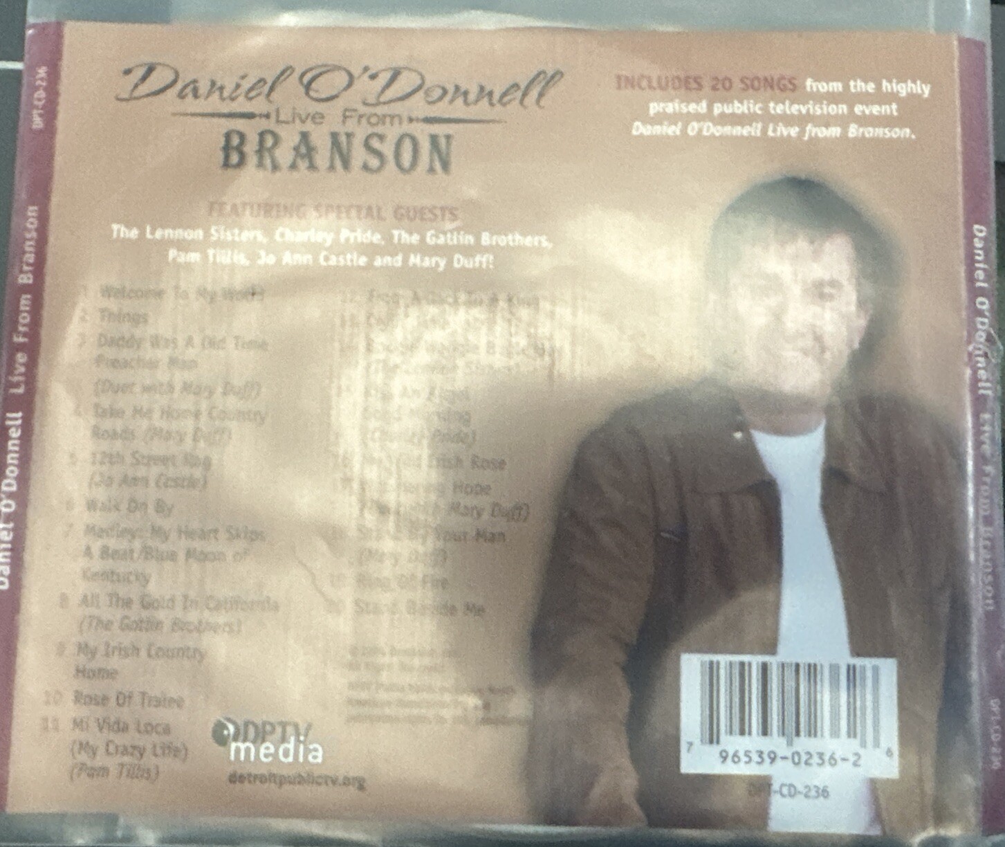 This Daniel O’Donnell ‘Live from Branson’ CD came from my father’s private collection. I looked over the CD and there are light scratches and evidence of use, but not abuse. The inlay is excellent condition. Overall I’d rate this very good plus and a good buy at $5.
