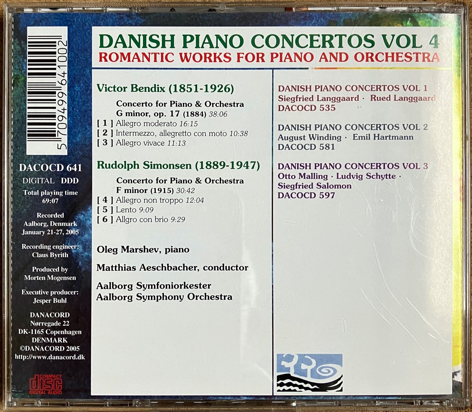 Danish Piano Concertos IV Composers Victor Bendix & Rudolph Simonsen Aalborg Symphony Orchestra Conductor Matthias Aeschbacher. Disc, case & inlay in near mint condition.
