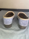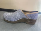 Dansko clogs are perfect for women who want both style and comfort. These blue suede clogs feature a round toe shape, slip-on closure, and a mid-height rocker heel style. The shoes are cushioned and have a comfortable feel, making them suitable for casual and workwear occasions. The clogs are perforated with a floral pattern, which adds a touch of bohemian and classic style to them. These shoes are handmade in China and are available in a standard shoe width. They are perfect for walking and are available in all seasons, including winter, summer, fall, and spring. The lining material is leather, and the upper material is also leather. These shoes are a great addition to any wardrobe and are perfect for those who want a comfortable and stylish pair of shoes.