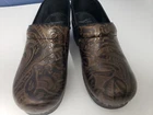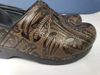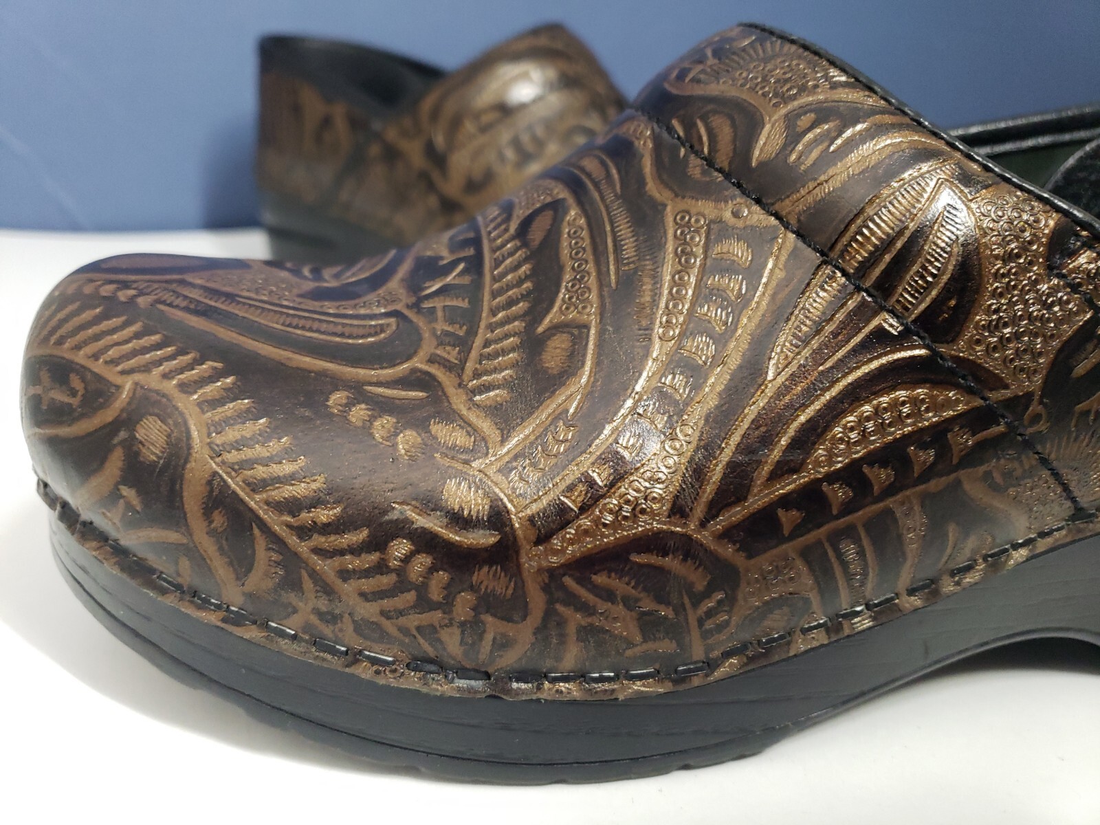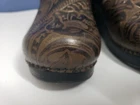 Dansko Clogs Brown Embossed Floral Tooled Leather Size 38 Women's. Conditon: pre-owned, shoe wear on sides ( see close-up pics), see actual pics for condition