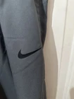 Preloved condition. These dark gray Nike Dri-Fit Windbreaker Pants in size Medium are designed for athletic wear. Made of 100% polyester blended fabric, they feature an elastic waist and pockets for convenience. With a solid pattern and Nike branding, these track pants are suitable for various activities like gym training, basketball, and running. The pants are machine washable and ideal for all seasons.