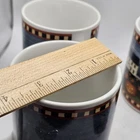 This set of four ceramic and porcelain coffee mugs features a spooky pumpkin pattern in multicolor. The round mugs are part of the David Carter Brown Collection and were manufactured in 2001 by Sakura. They are perfect for Halloween and can hold hot or cold beverages. The mugs are microwave and dishwasher safe, making them convenient for everyday use. The vintage style adds a touch of country to your kitchen or dinnerware collection. The set includes a cup and is suitable for unisex adults. The mugs are not personalized and are an original reproduction of the Pumpkin Hollow design.